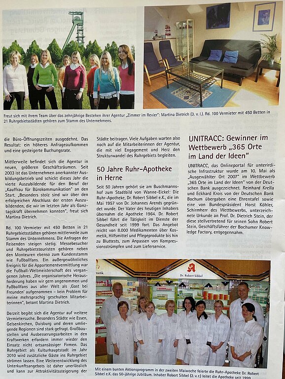 Martina Dietrich freut sich mit ihrem Team über das zehnjährige Bestehen ihrer Agentur Zimmer im Revier